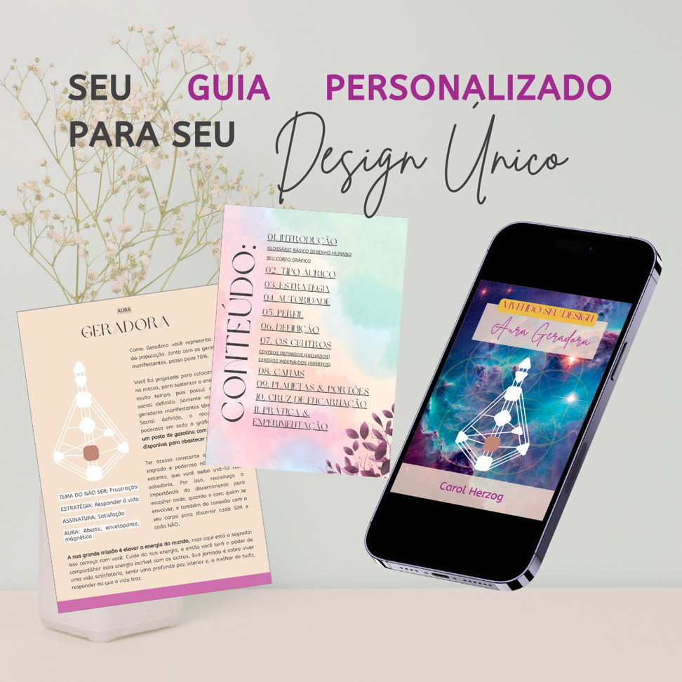 O livro guia personalizado é um recurso abrangente e acessível que condensa informações importantes sobre o seu Desenho Humano. Um guia prático que apresenta as peças do quebra-cabeça do seu design individual de uma forma fácil de entender. É uma ótima opção para quem prefere explorar as informações em seu próprio ritmo, absorvendo cada detalhe à medida que avança. Além disso, você terá uma referência valiosa para consultas futuras sempre que precisar.